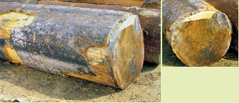 Heartwood distinct. Heartwood brown or dark brown with golden