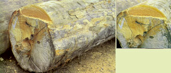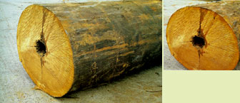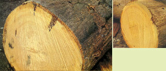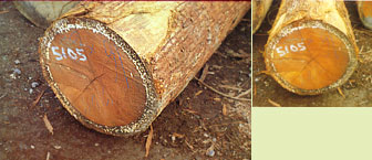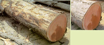 on the log edge, but sapwood paler when sawn. Red brown vessel